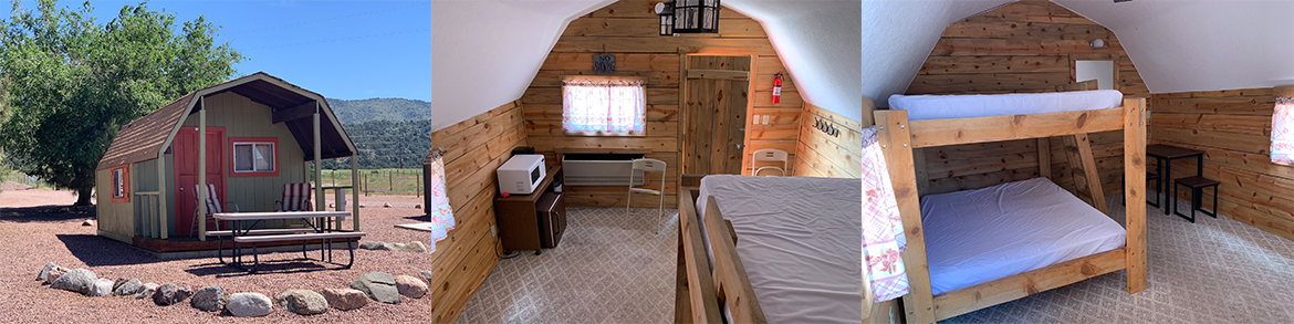 Cabin site includes: lodging for 2, parking for one vehicle, electricity, fire pit and table. Cabins sleep 4, max 4 people per cabin. No animals allowed in the Comfort cabins. Cabin 1 & 2 Comfort (heat, A/C, carpet, paneling, mini-fridge, microwave and coffee maker). Cabins do not include: bathroom facilities or TV. Restrooms and a bathhouse are conveniently located. No linens or pillows are provided – please bring yours! Pets not allowed in cabins.