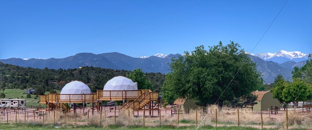 Colorado glamping – A view of the geodesic domes at Mountain View RV Resort by the Royal Gorge. The best yurts